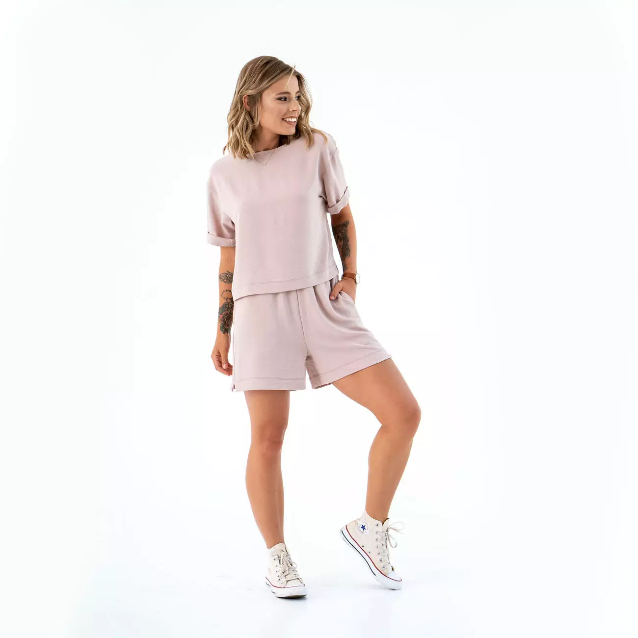 Женский комплект шорты и футболка из тонкого материала креп, с