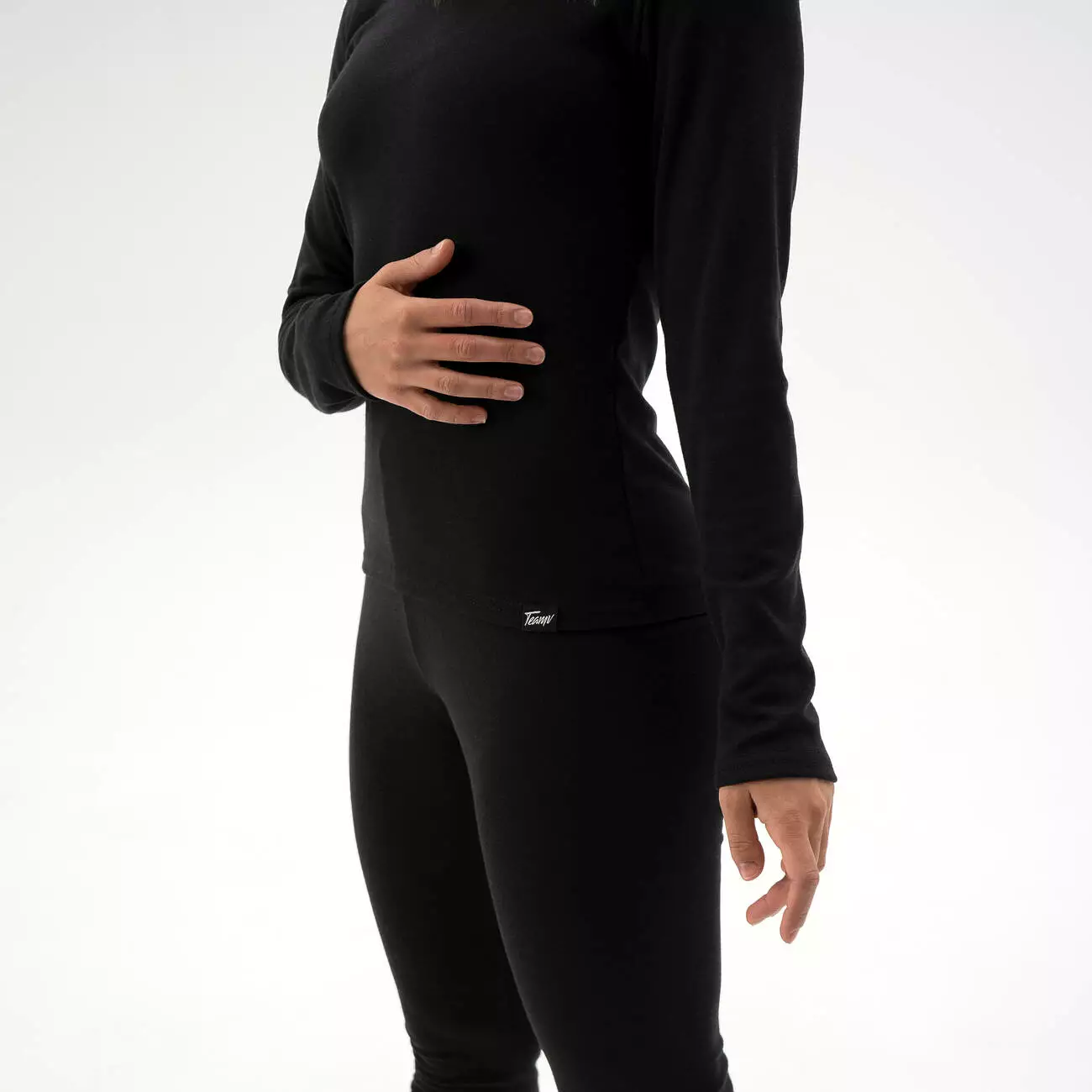 Комплект термобелья из теплой ткани, сохраняющей тепло тела. Дает