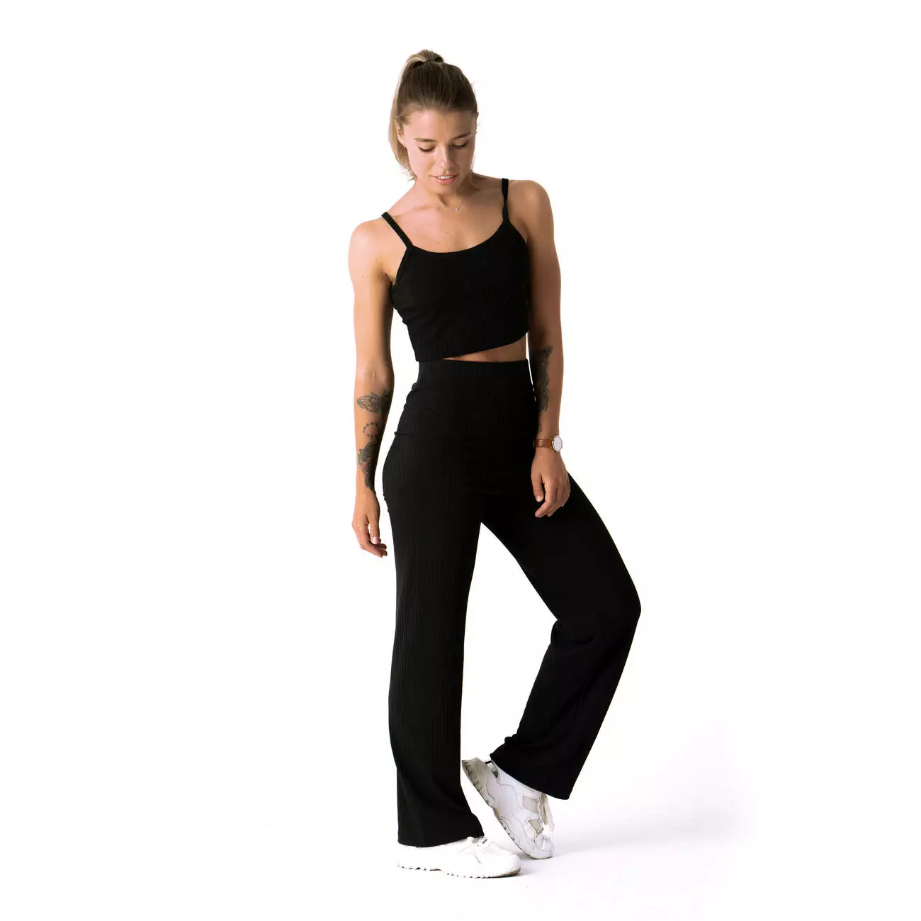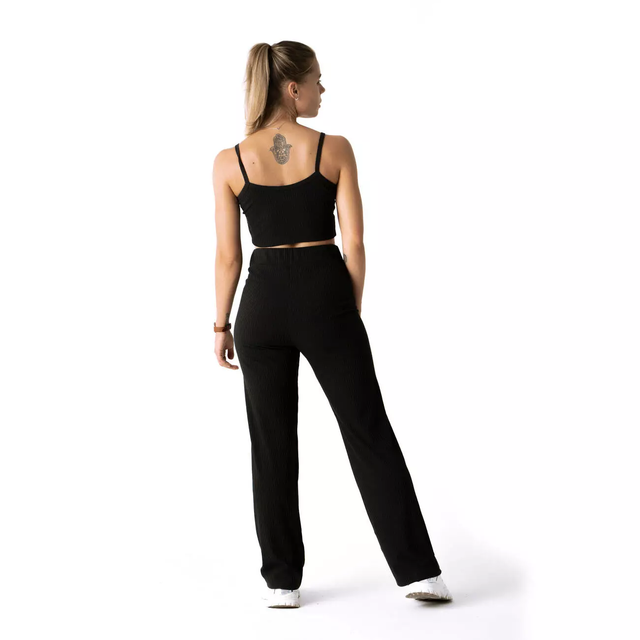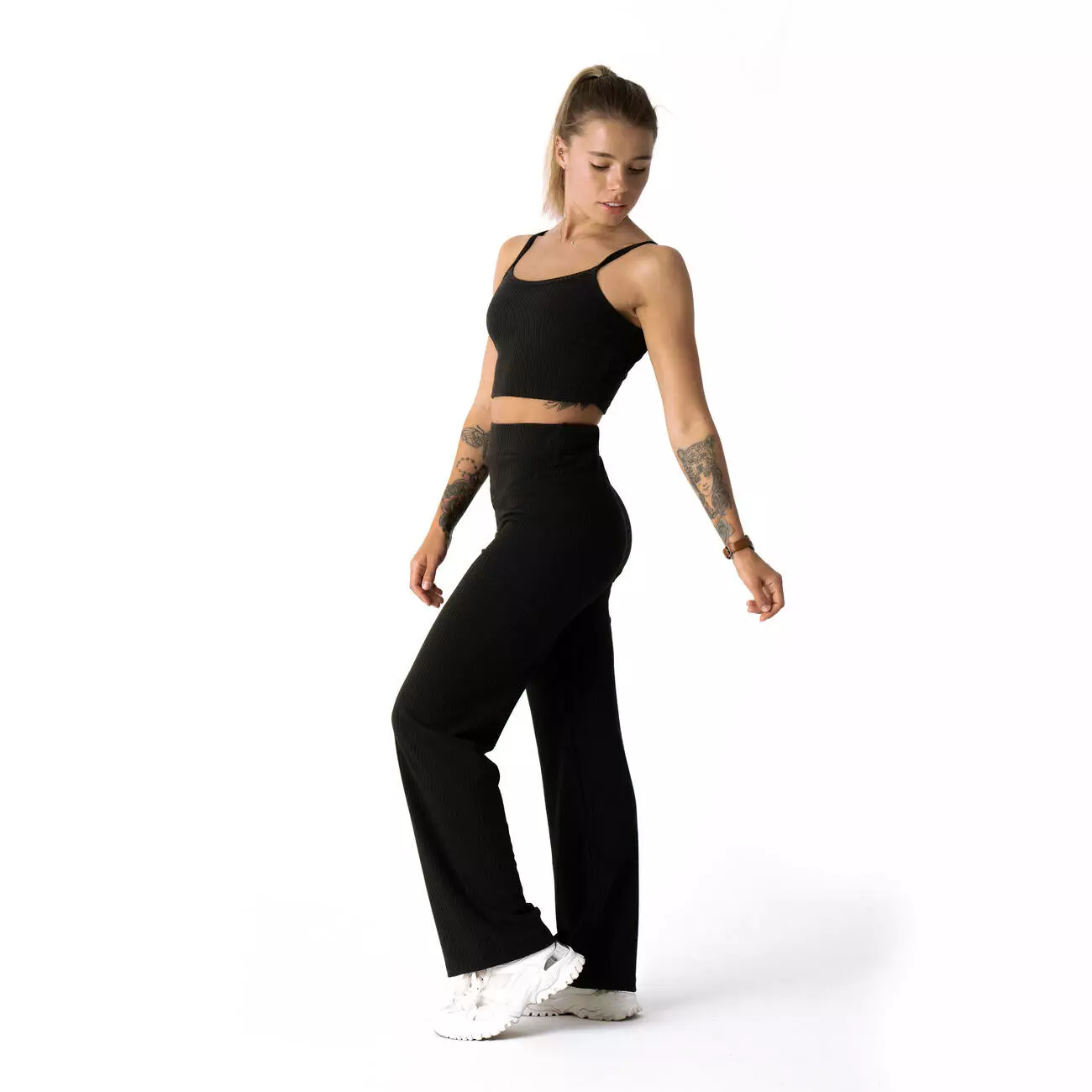 материала. Штаны с высокой посадкой прямого кроя, с эластичным