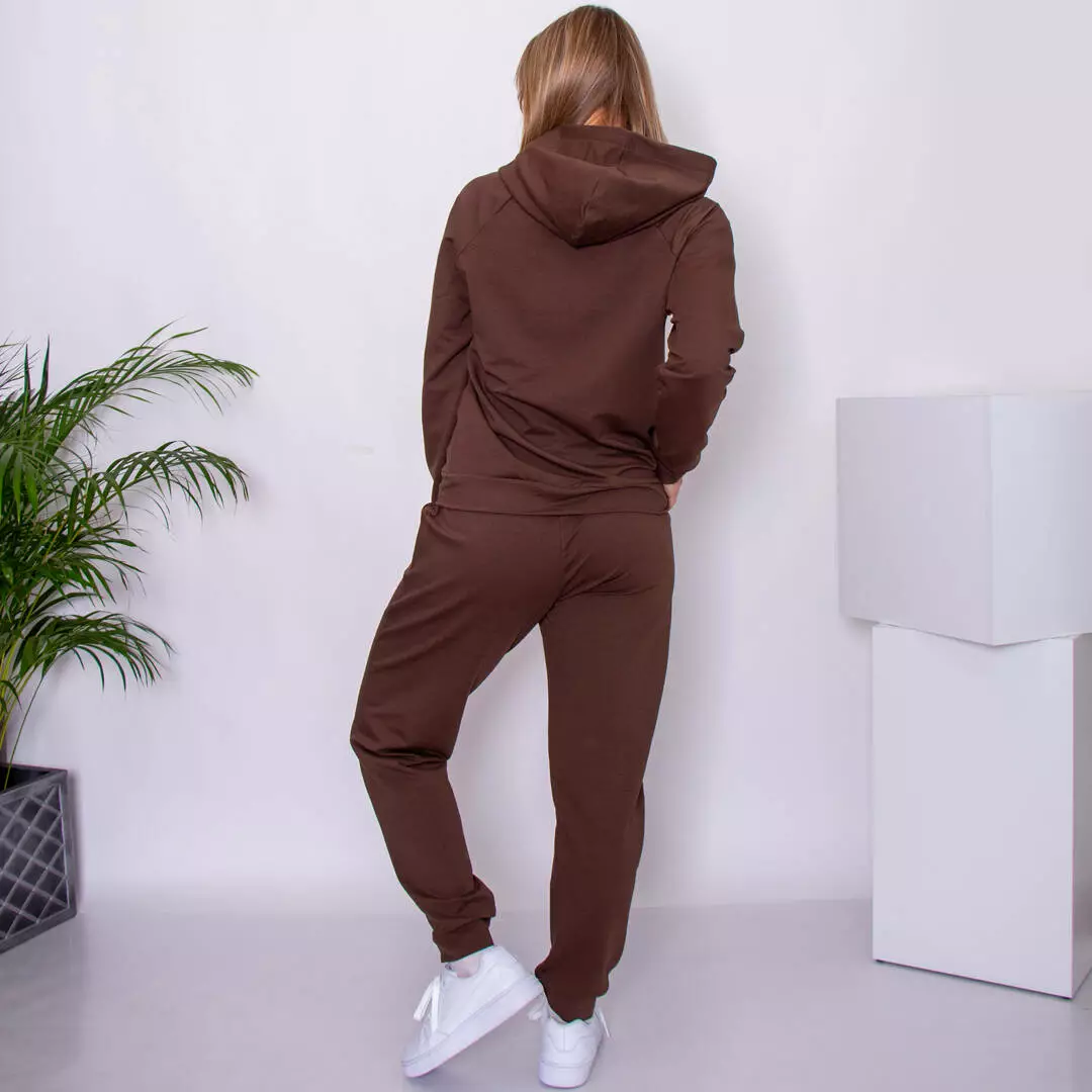 Стильный однотонный костюм из худи с карманом-кенгуру и штанами с
