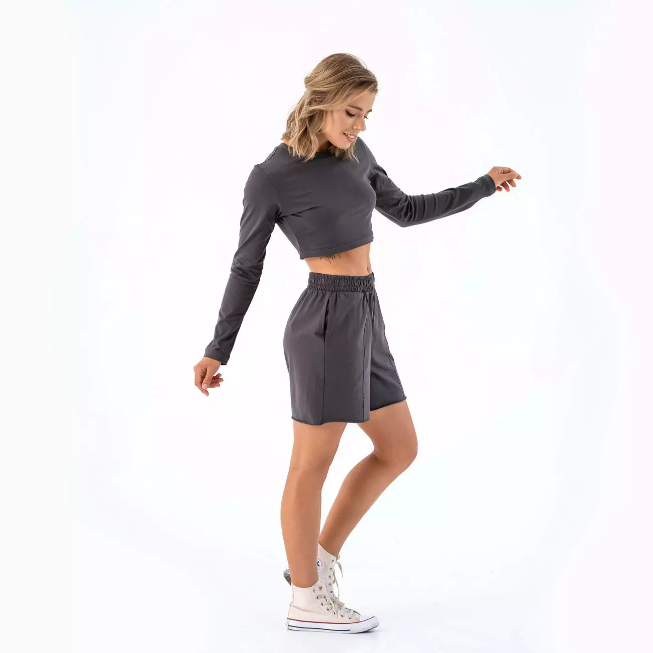 Женский летний комплект шорты с укорочнным лонгсливом. Комплект из