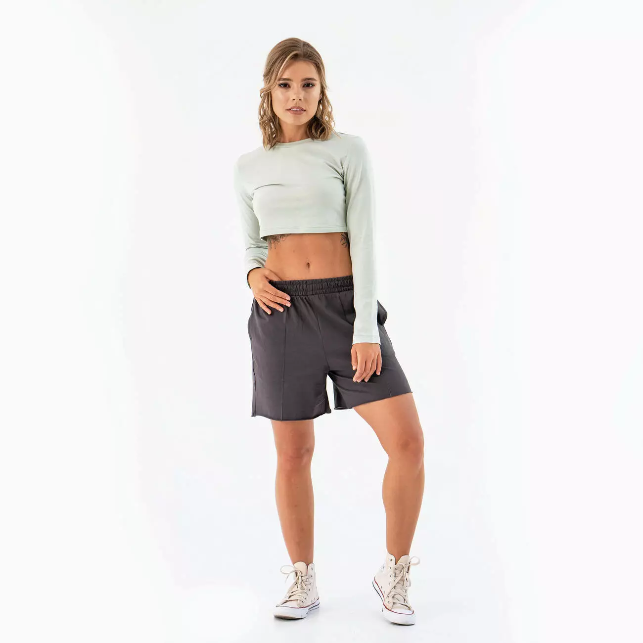 Женский летний комплект шорты с укорочнным лонгсливом. Комплект из