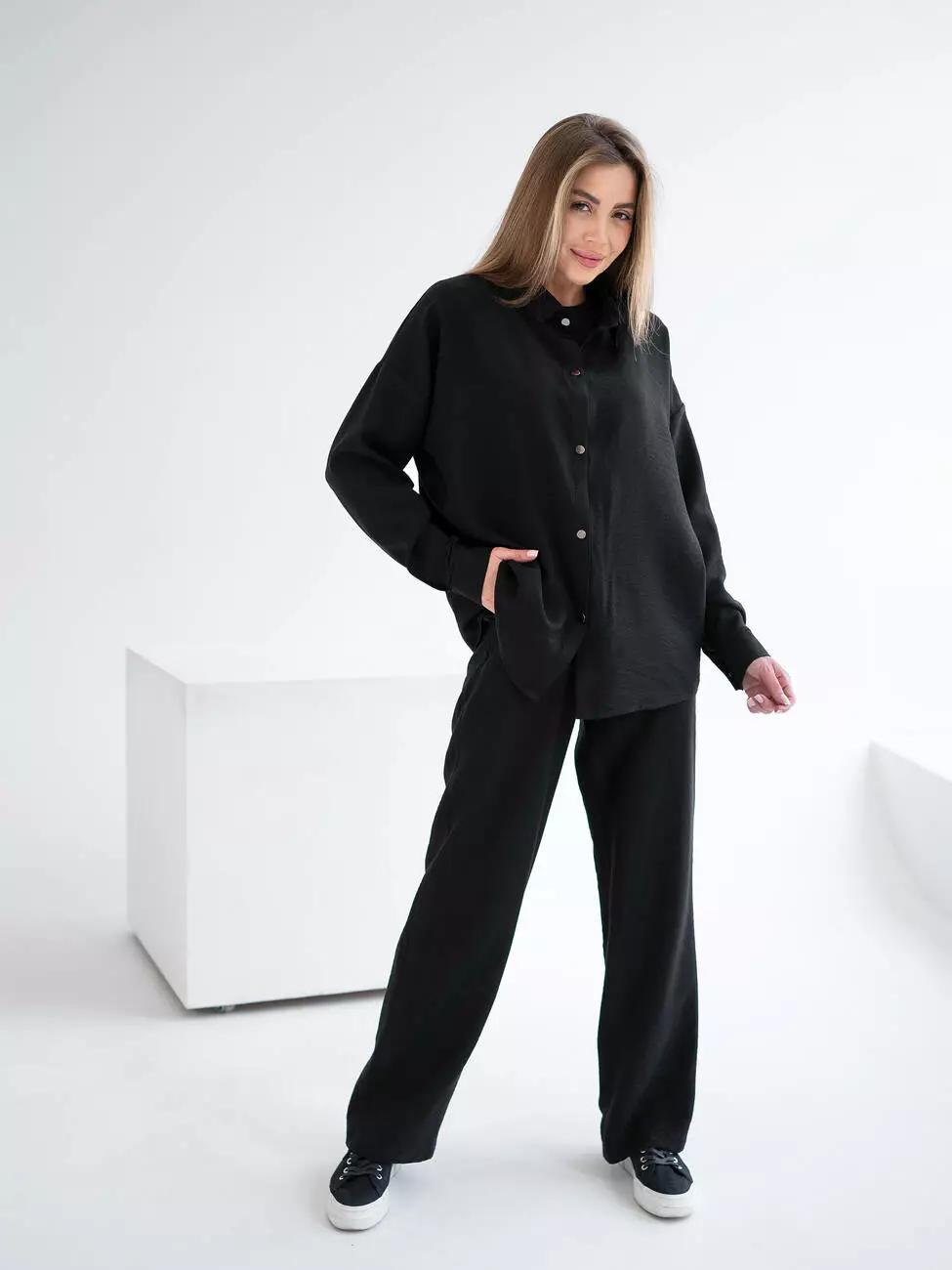 Женский летний костюм с рубашкой свободного кроя и штанами на