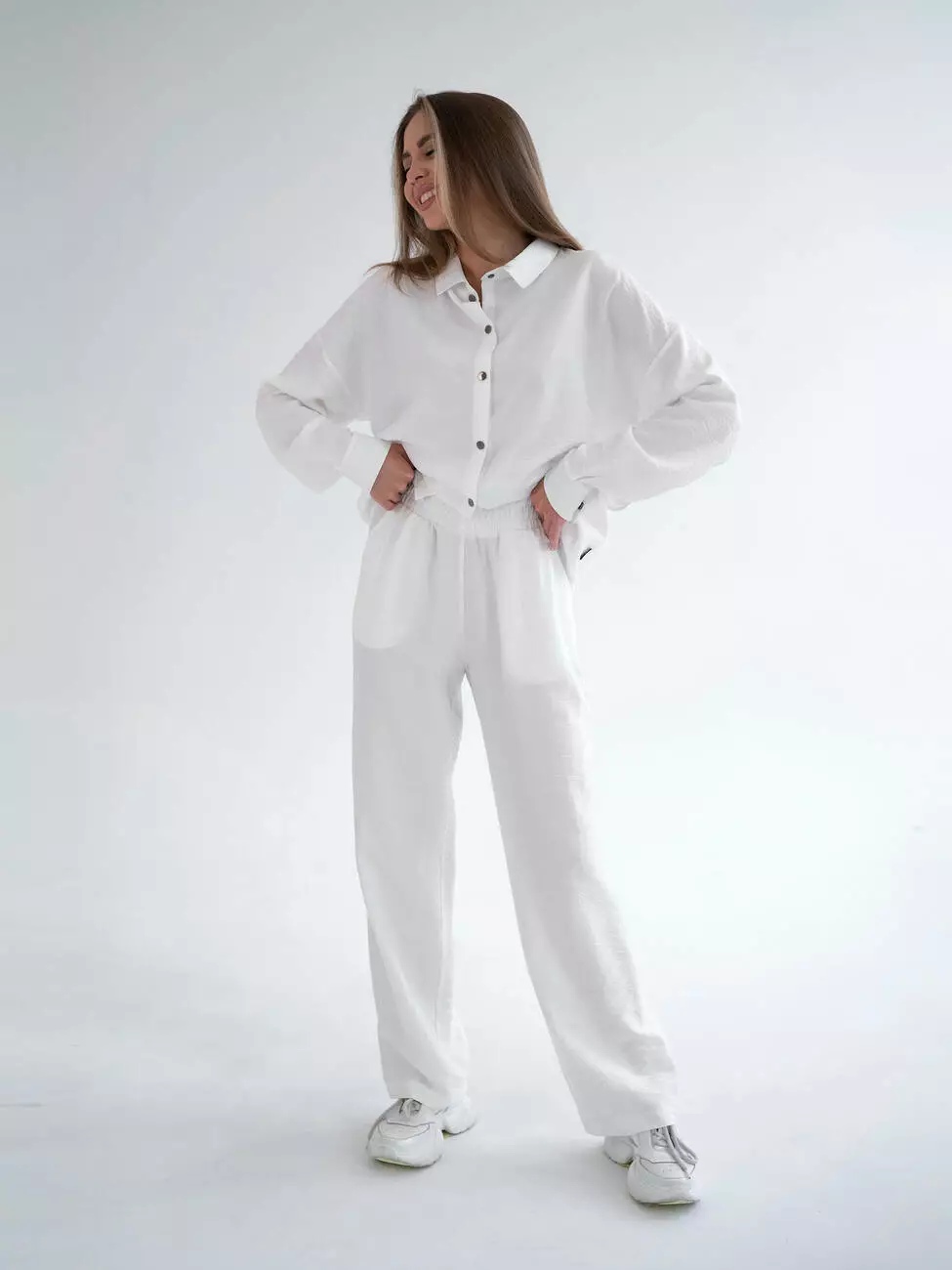 Женский летний костюм с рубашкой свободного кроя и штанами на