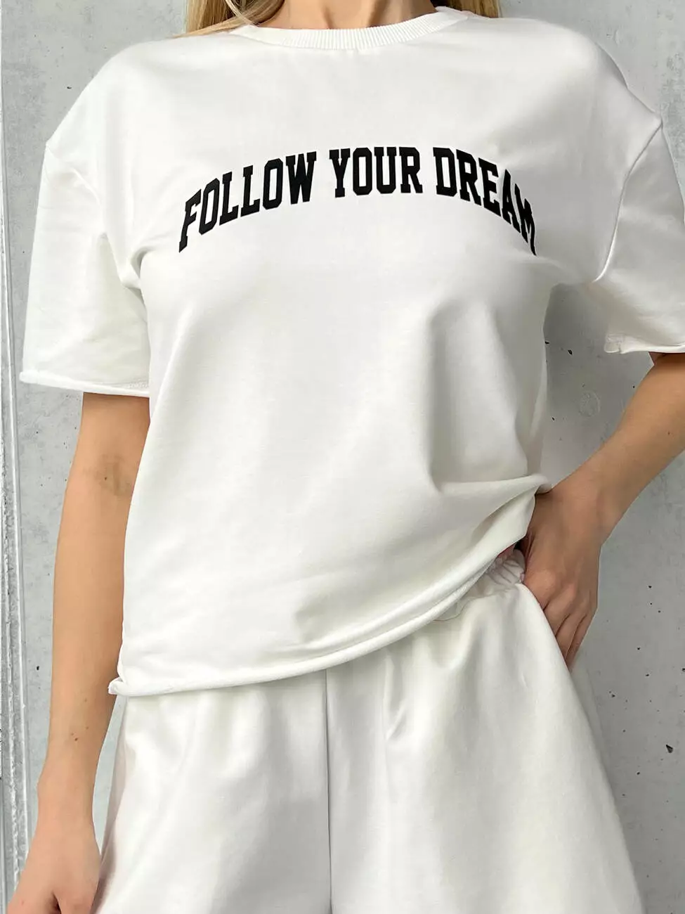 Женский костюм на лето с шортами и футболкой. Свободный крой с