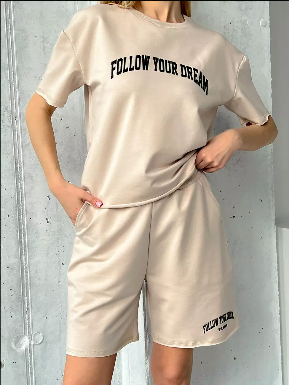 Женский костюм на лето с шортами и футболкой. Свободный крой с