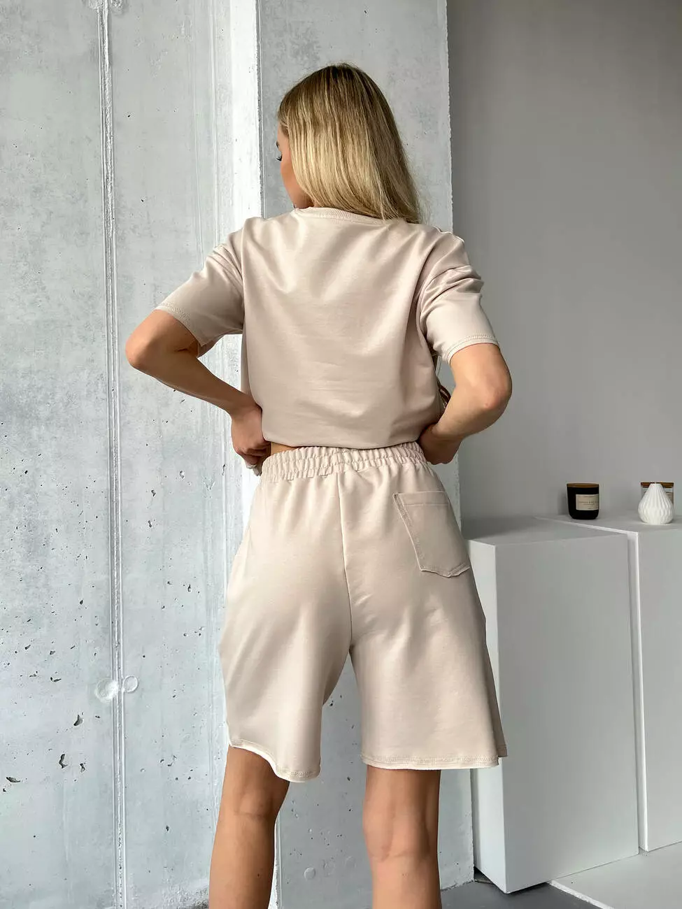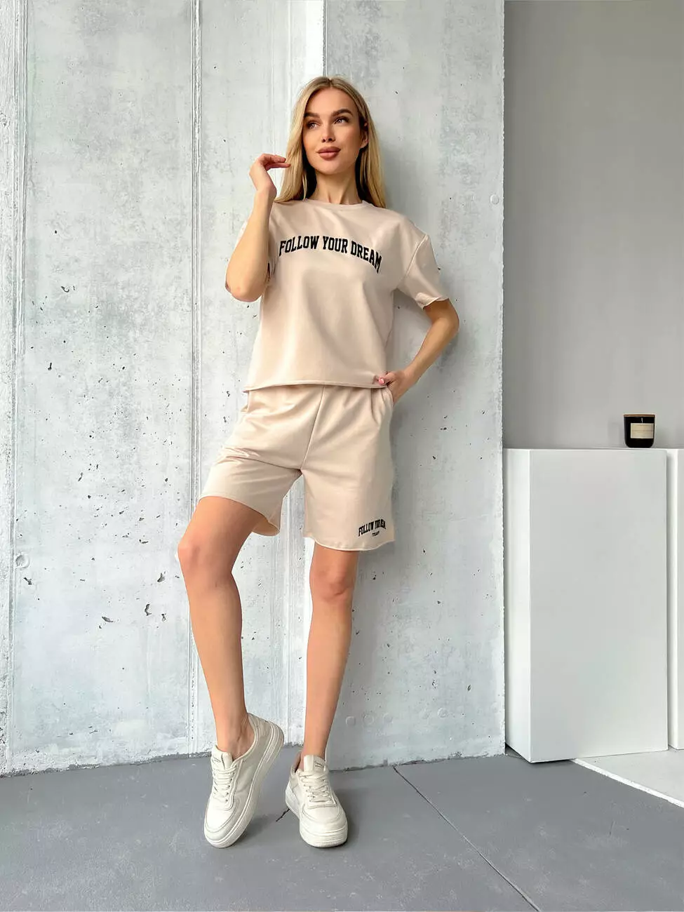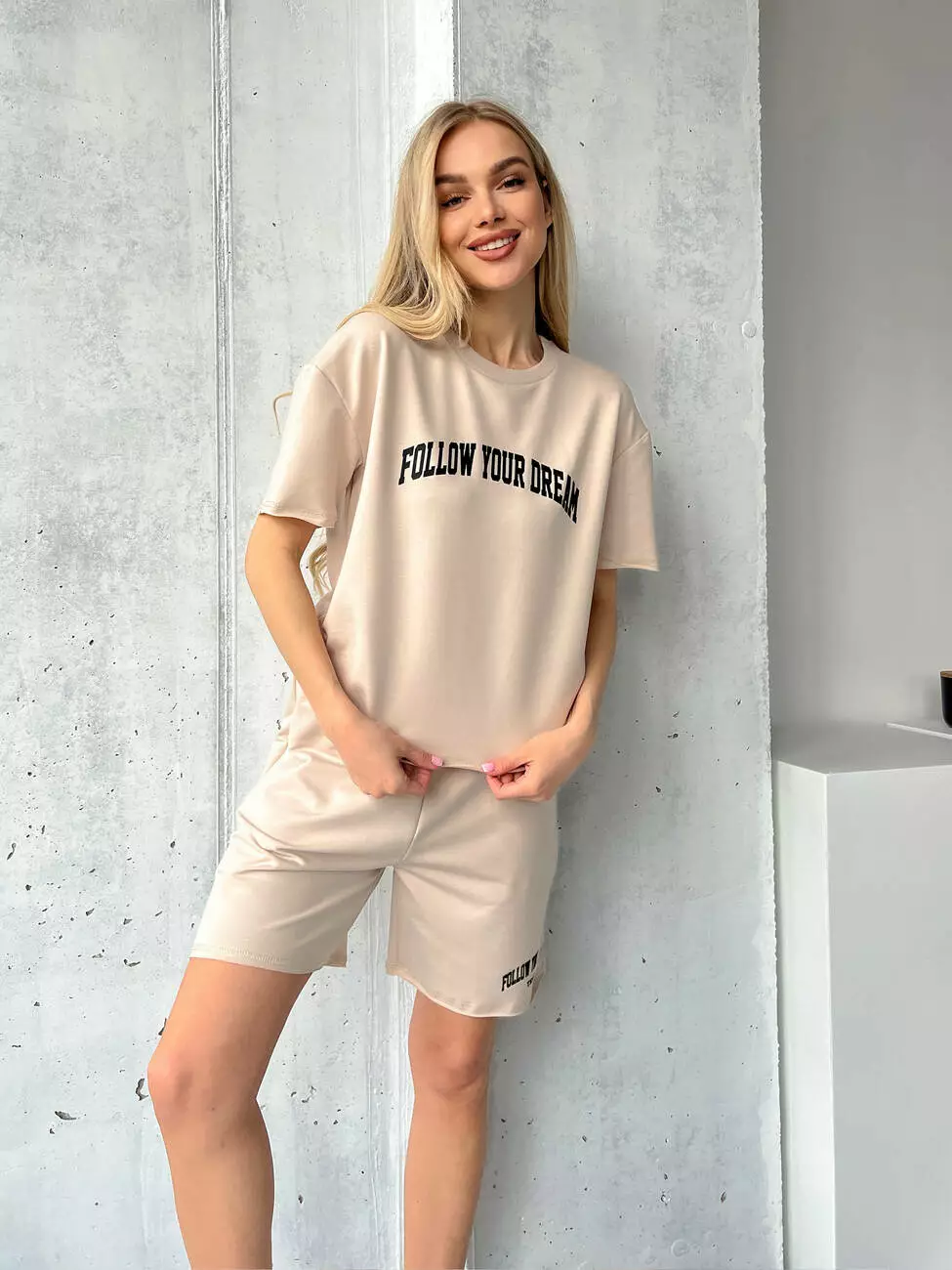 Женский костюм на лето с шортами и футболкой. Свободный крой с