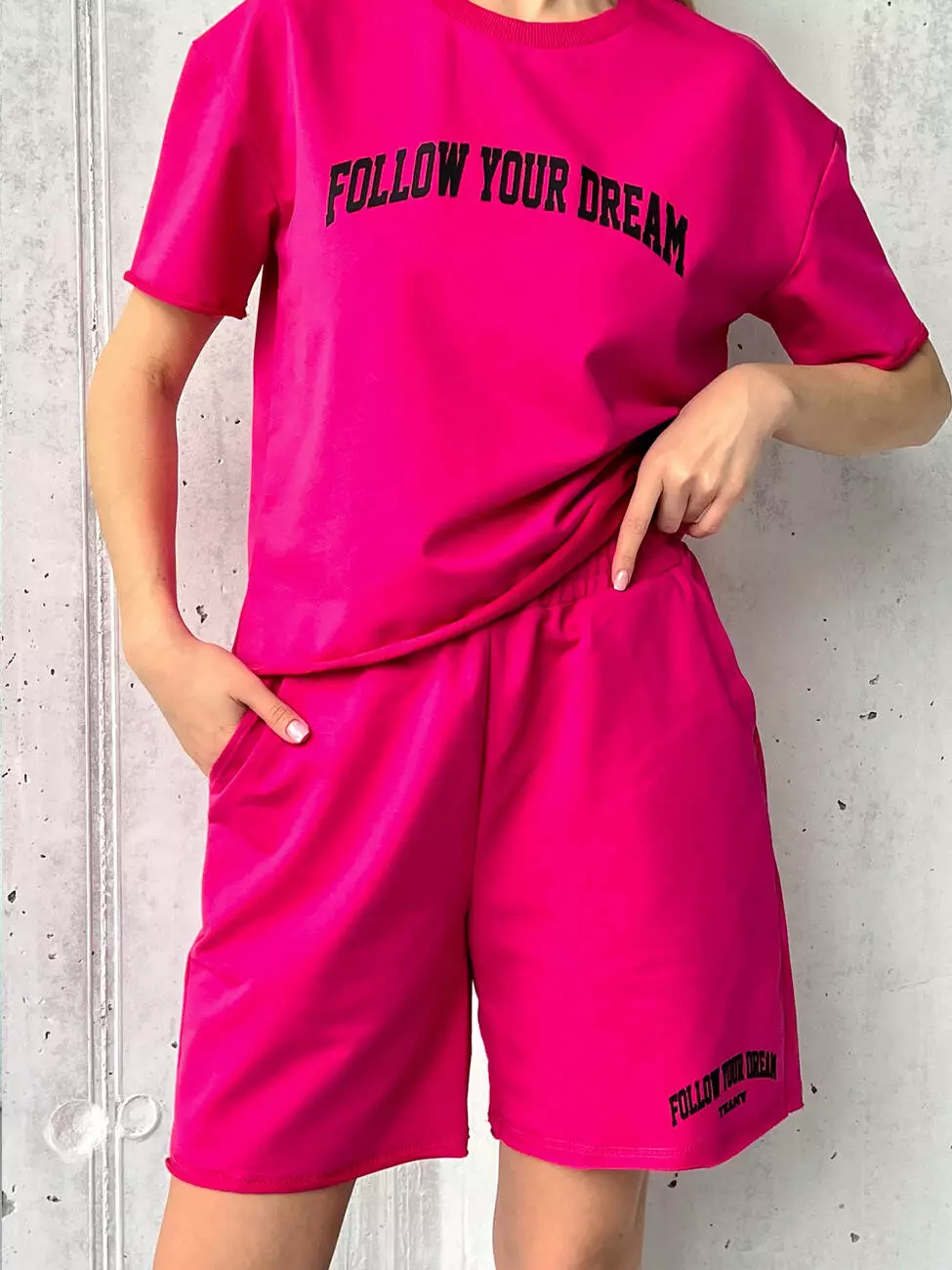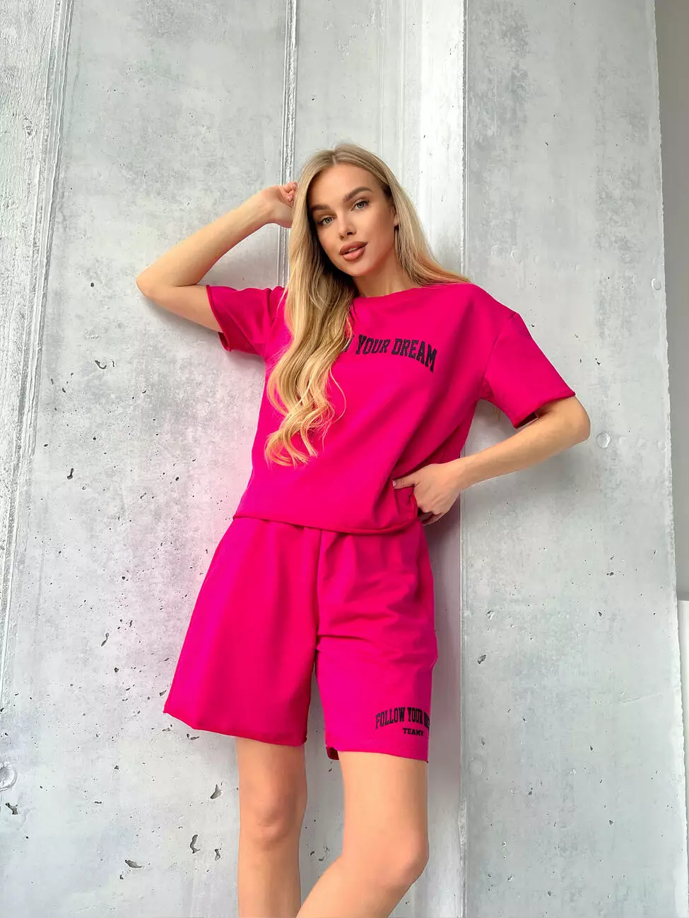 Женский костюм на лето с шортами и футболкой. Свободный крой с