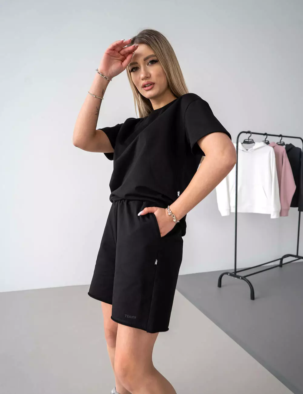Костюм свободного кроя: футболка с логотипом TEAMV и свободными