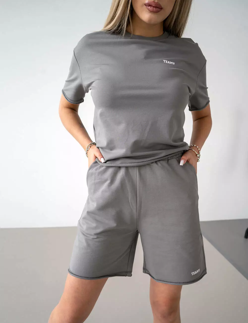 Костюм свободного кроя: футболка с логотипом TEAMV и свободными
