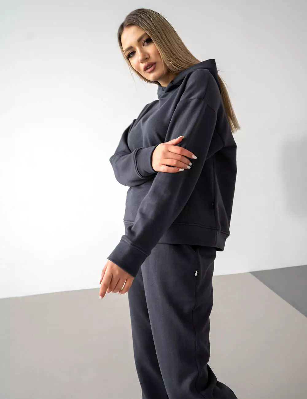 Худи свободного кроя оверсайз с объемным капюшоном и штанами с