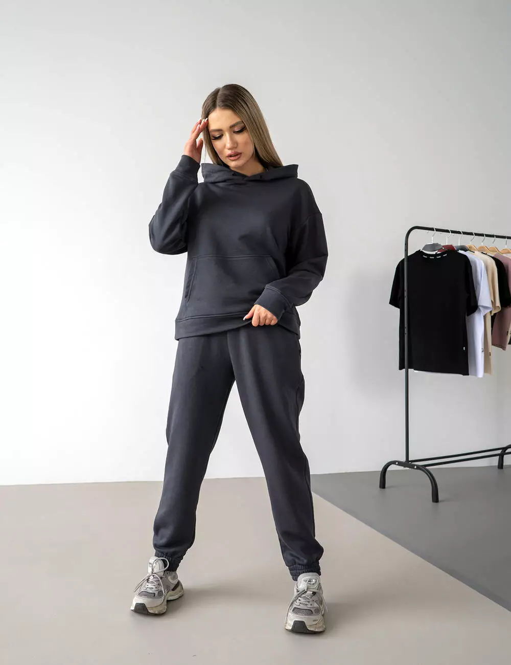 Худи свободного кроя оверсайз с объемным капюшоном и штанами с