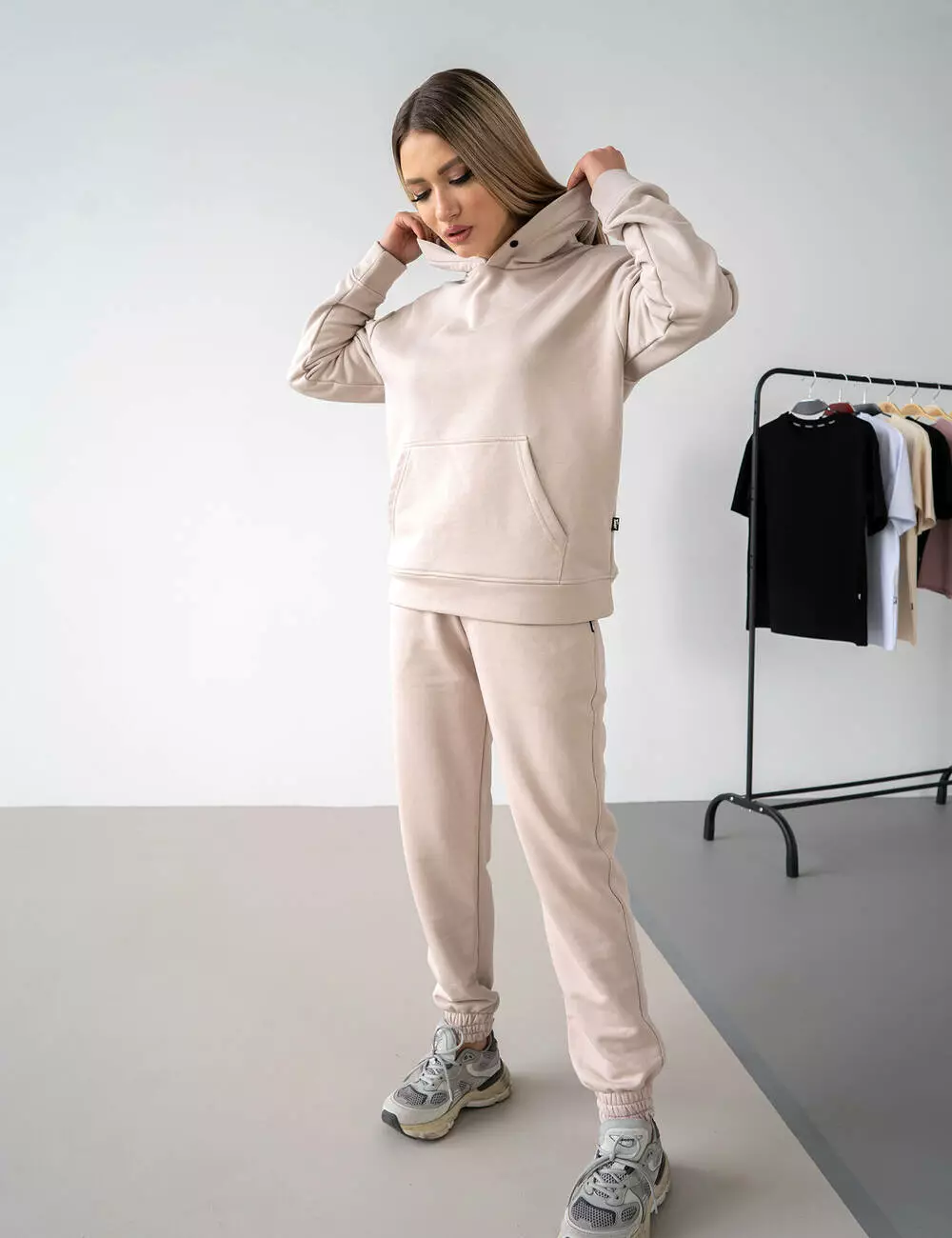 Худи свободного кроя оверсайз с объемным капюшоном и штанами с