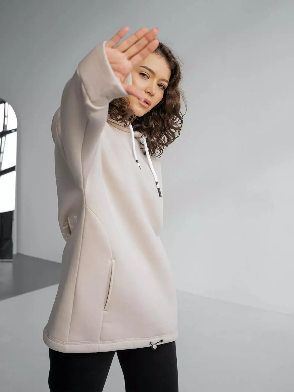 Женская теплая толстовка с двойным капюшоном. Крой свободный
