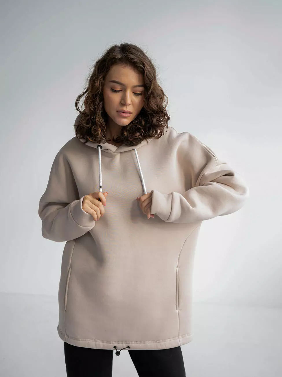 "оверсайз" с заниженной линией плеча, также по низу толстовки