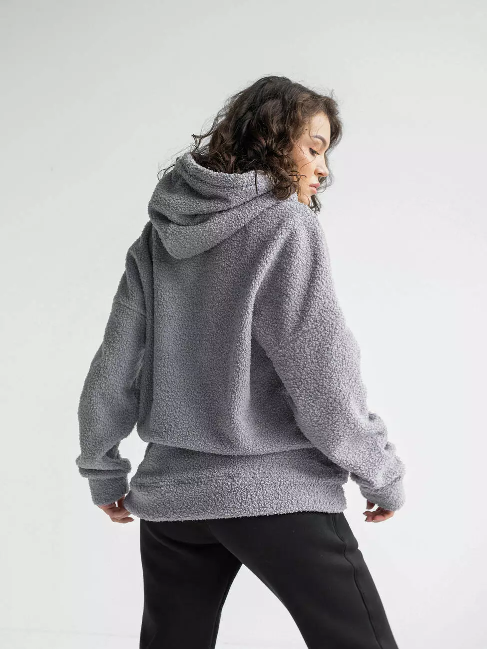 Теплая женская толстовка барашек. Худи большого размера в