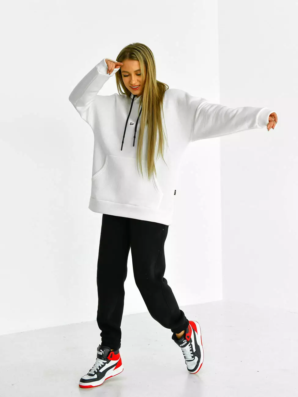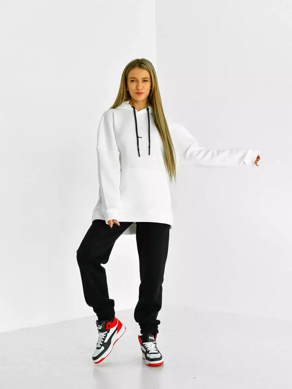 Женский теплый худи в стиле Oversize. Худи со спущенным плечом и карманом-кенгуру.
