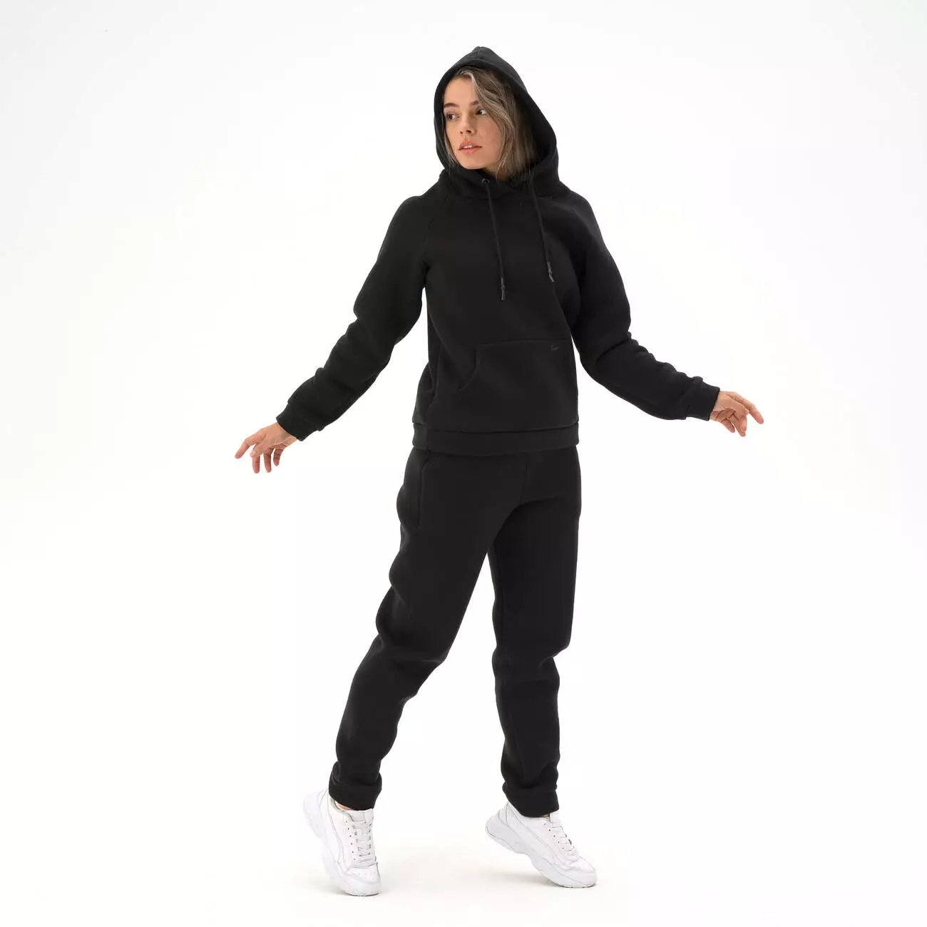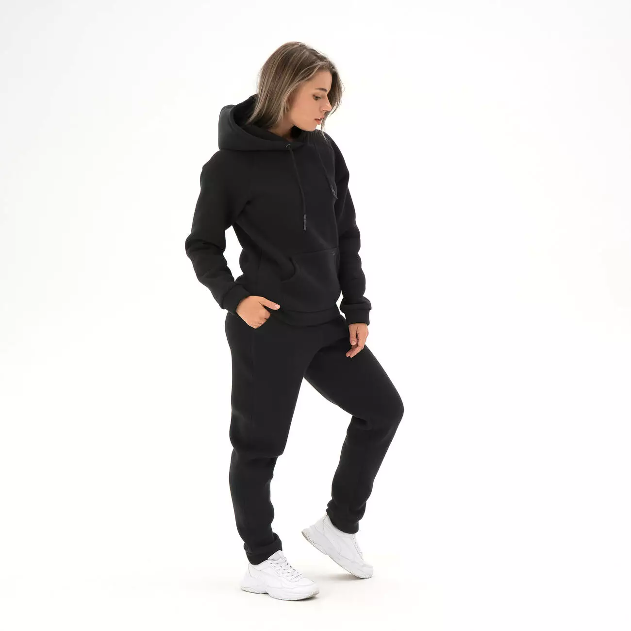 карманом-кенгуру, крой рукава - реглан. Штаны с высокой посадкой,