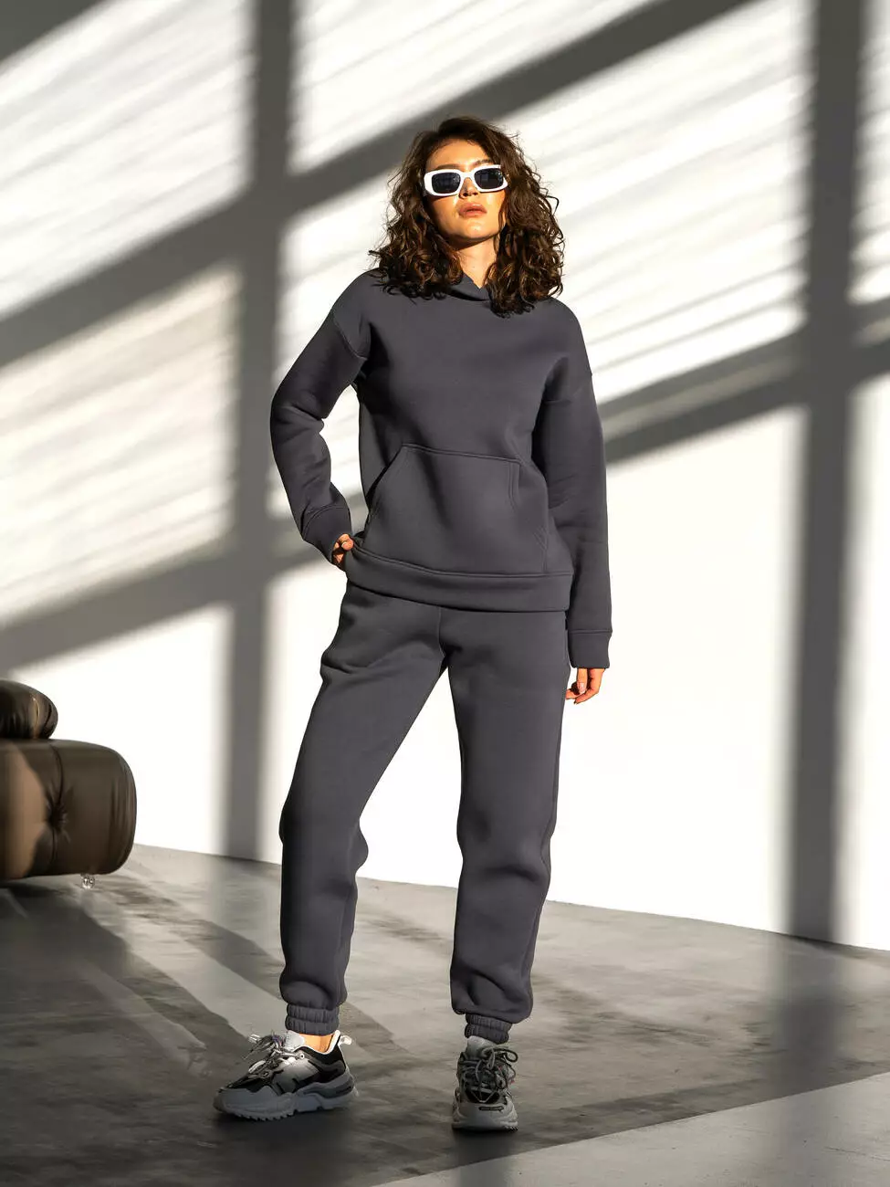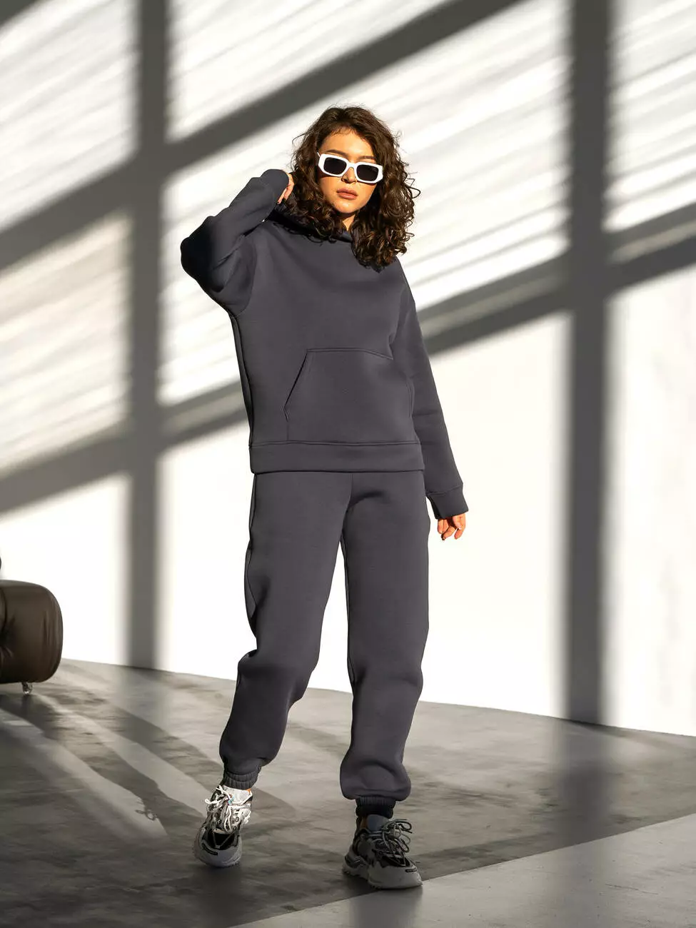 Теплый костюм с худи в умеренно свободном стиле Оверсайз.
