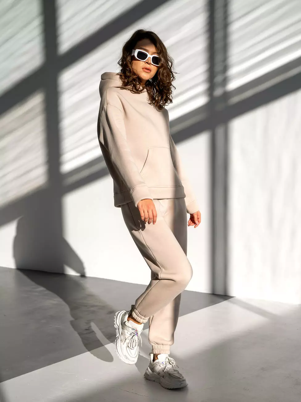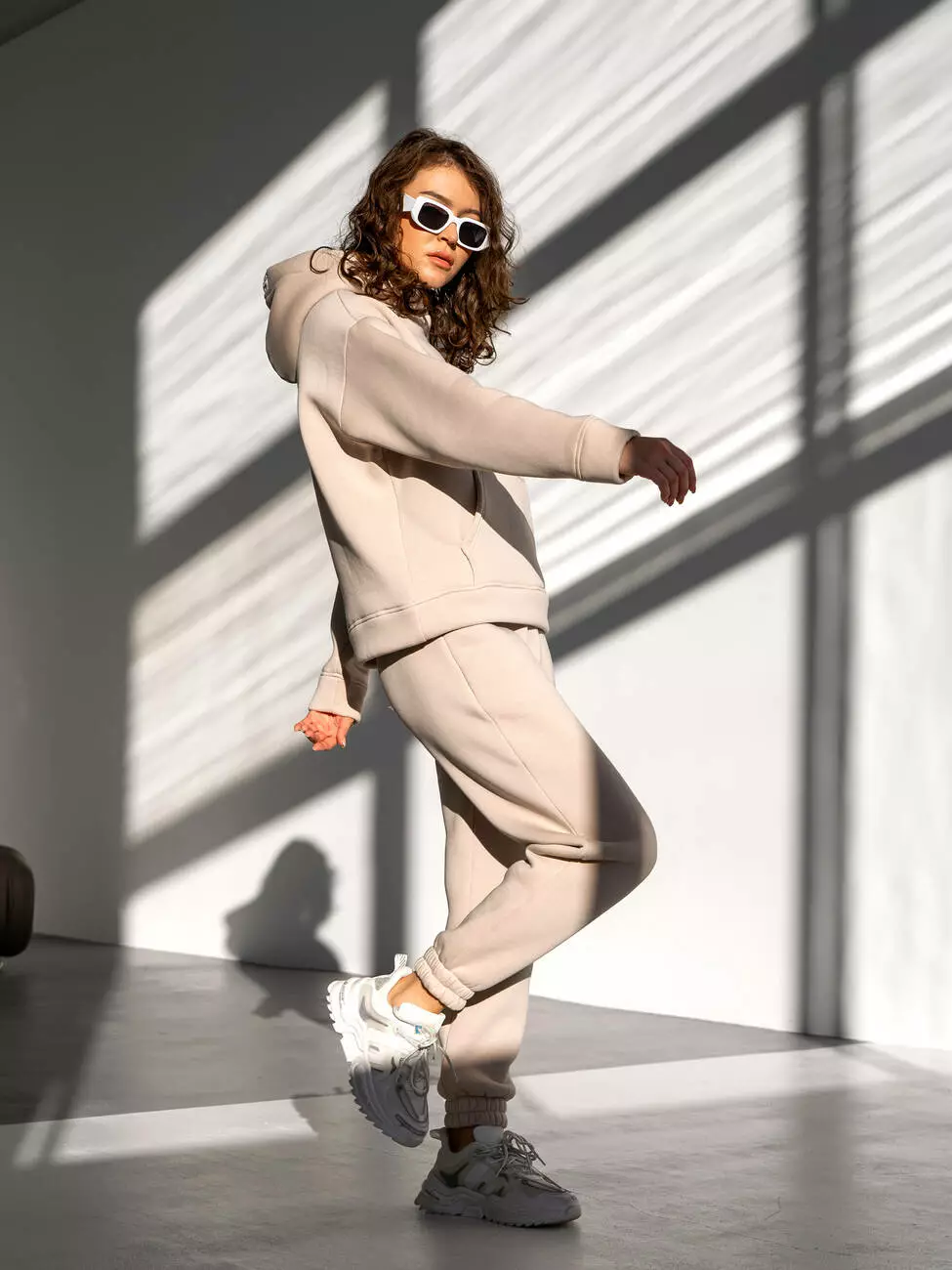 Теплый костюм с худи в умеренно свободном стиле Оверсайз.