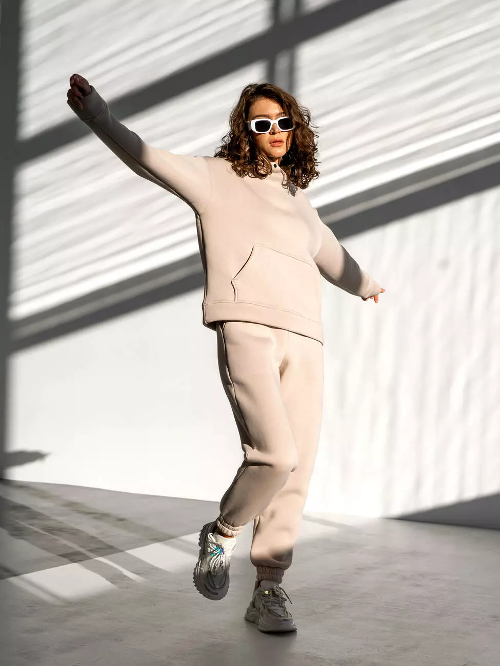 Теплый костюм с худи в умеренно свободном стиле Оверсайз.