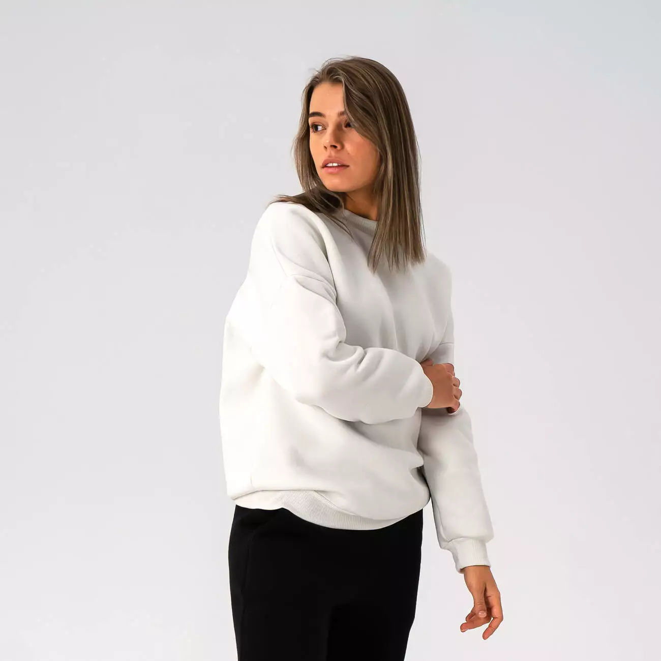 Женский теплый свитшот со спущенным плечом в стиле Оверсайз.